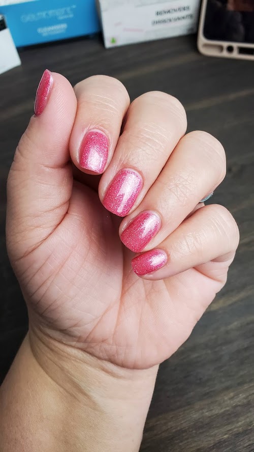 Deep hot pink. Medium. Frosted. Opaque. Warm undertone.
